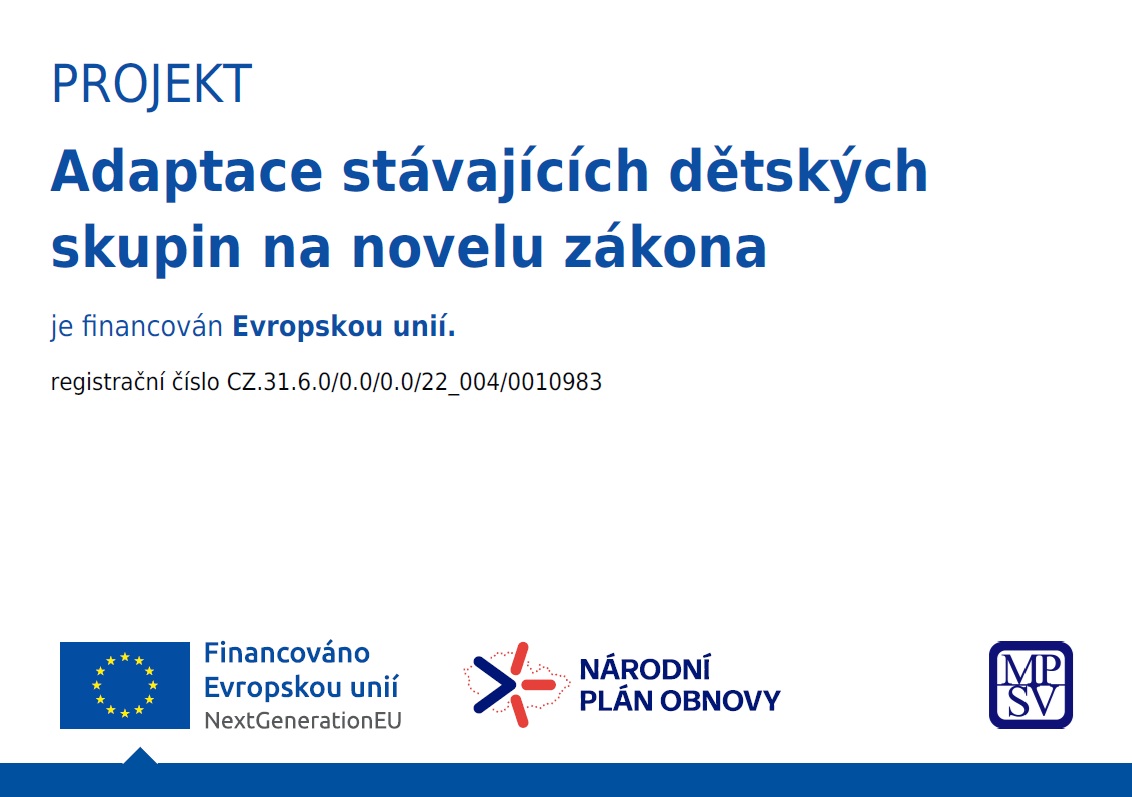 Projekt "Adaptace stávajících dětských skupin na novelu zákona" byl financován Evropskou unií.